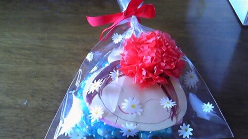 母の日ですよ~vv すっかり忘れていましたが・・・ 「公民館」の 手作り教室で こんなもの作ってプレゼントしてくれましたぁ^m^ カードの表vv どうやら似顔絵?? カードの裏vv シールもはってくれてとっても可愛~ これはブレスレットを作ってくれ…