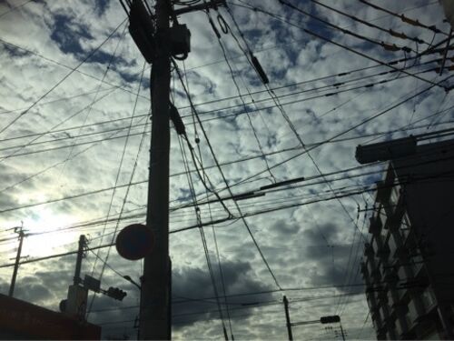 電線がこうやって邪魔なくらいに見える感じ好きです。この日の空はそんなに晴れていなくて多分台風が到来する前。 パソコンからの投稿久しぶりに触る我が家のパソコンのキーボードのボタン(?)が職場のそれよりも一回りほど大きくて戸惑う。よく見えて嬉…